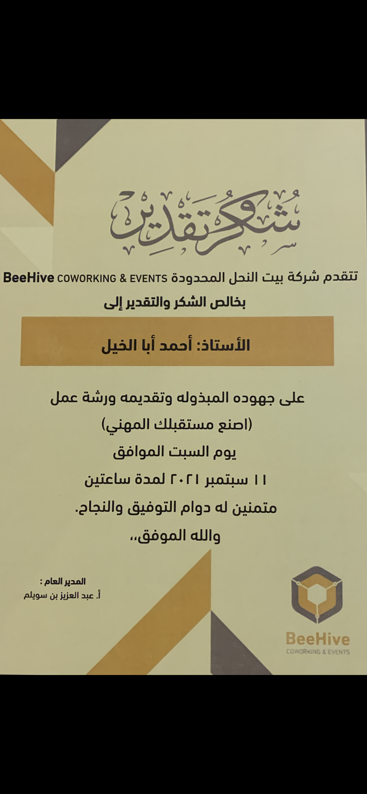 بفضل من الله و بتوفيق منه سبحانه وتعالى قدمت ورشة العمل ” اصنع فرصتك الوظيفية” بمحافظة الخرج يوم أمس. كانت المحاضرة حضوريا و حضرها ٢٠ متدرب ومتدربة التزم الجميع بالاجراءات الاحترازية. شكرا لجميع المتدربين والمتدربات على تعاونهم و شكرا لادارة و فريق العمل في شركة بيت النحل ” BeeHive” على التنظيم الأكثر من رائع.